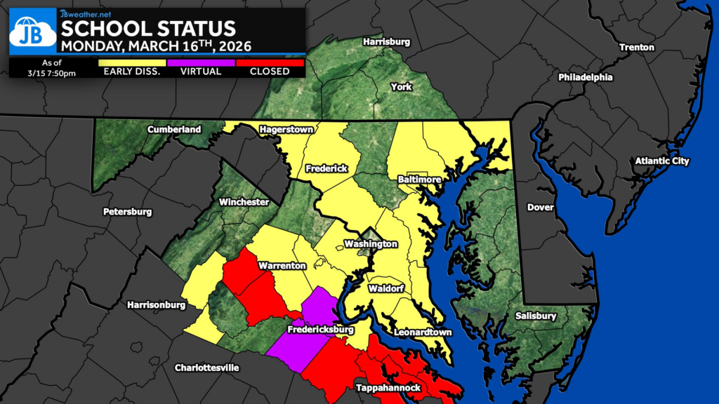 Stay with JB Weather for the latest information on impacts here in Southern Maryland and across the Mid-Atlantic. You can always access my forecasts and updates here on the website, on Facebook, on Twitter, on Instagram, and on YouTube. JB Weather is the Mid-Atlantic’s Weather Leader, and I am working around the clock to keep you ahead of any storm!