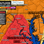 A rare and potentially impactful severe weather risk is expected to unfold across the Mid-Atlantic on Monday. While the overall forecast has not changed significantly, the timing of storms has become clearer throughout the day. Many school districts across the region have already announced early dismissals ahead of the highest risk period Monday afternoon.
