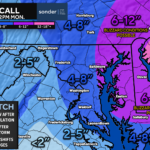These alerts continue to evolve this morning as confidence grows in a stronger coastal storm. Winter Storm Watches have been pushed west toward the Potomac and Blue Ridge, where there is now a growing threat for 5″+ of snow. This includes all of Southern MD and the DC/Baltimore metros. However, some uncertainty remains here on how far west the heavier totals extend.