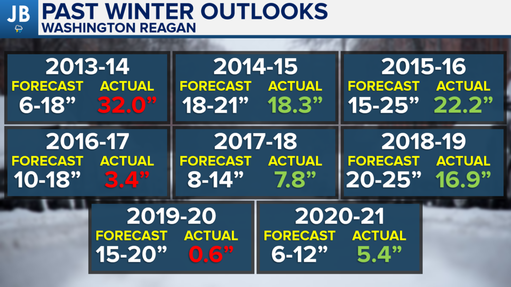 Clearly, some seasonal forecasts are better than others. Last winter, I forecasted for our region to see 6-12″ of snow with a few wintry mix events. Sure enough, much of our region saw 6-12″ (granted it all seemed to come in a 3-week period at the start of February) with 2 major icing events. We’ll see if this year’s forecast is as good.