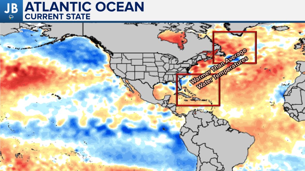 Additionally, the warm Atlantic waters will play a factor. The first way is that the presence of warm water off the SE coastline can develop an area of high pressure, known as the Southeast Ridge. The presence of this ridge can shove the Jet Stream to the north, and limit the cold air that can come southward. However, we also have a pool of warm water sitting near Greenland. This warm water can create a separate ridge of high pressure in that region. A ridge over Greenland would actually help to buckle the Jet Stream and retroactively stunt it southward over the East Coast. This could actually help bring a cold/snowy pattern to our region. We will need to see which warm pool wins out!