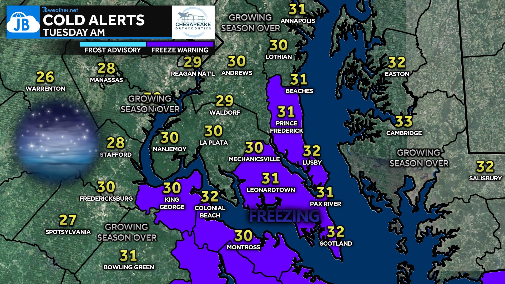 Freeze Warning for Southern Maryland: Lows In The 30s Tonight