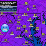 Despite some sunshine, today stays cold from start to finish. Afternoon temperatures will struggle to reach freezing, with many locations topping out in the upper 20s to near 30°. In addition, scattered snow showers or flurries are possible north of the Mason–Dixon Line, driven by lingering northwest flow. Any snow activity will be brief and light, but could still cause localized slick spots.