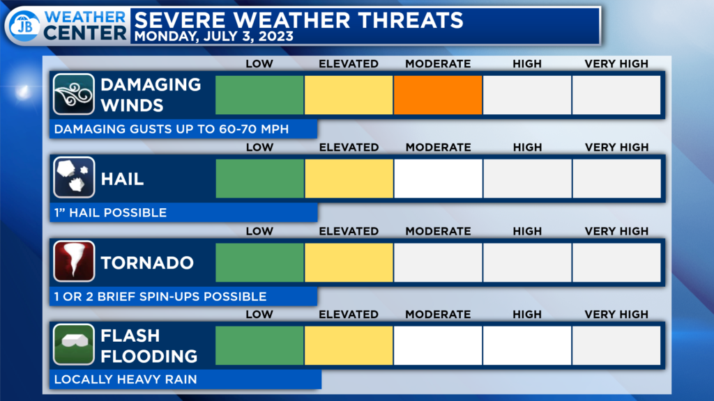 Futurecast shows that the heat and humidity today will help serve as critical building blocks for potential storm development as a cold front moves through the region this afternoon. We could see storms, which could be strong to severe, move through the area during the late-afternoon to early-evening hours.
