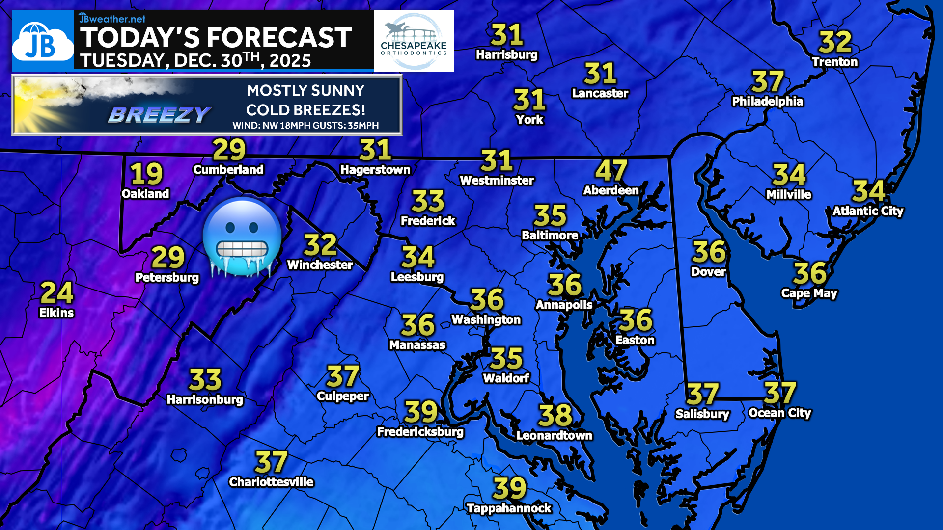 Tuesday’s Forecast: Blustery Northwest Winds Deliver Winter Chill