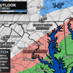 The best chance for more meaningful snowfall remains northeast of Baltimore into southeastern Pennsylvania and the Philly metro, where 1–3″+ is possible as colder temperatures allow for steadier snow during the afternoon and evening. Roads should remain mostly wet for many, but brief slick spots can’t be ruled out where snow intensity increases.